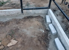 Мы решили избежать демонтажа ограждения и установили бордюрные блоки по периметру участка. Работы проводились при помощи уровня, что позволило избежать ненужных подъёмов и впадин, способных испортить внешний вид покрытия.